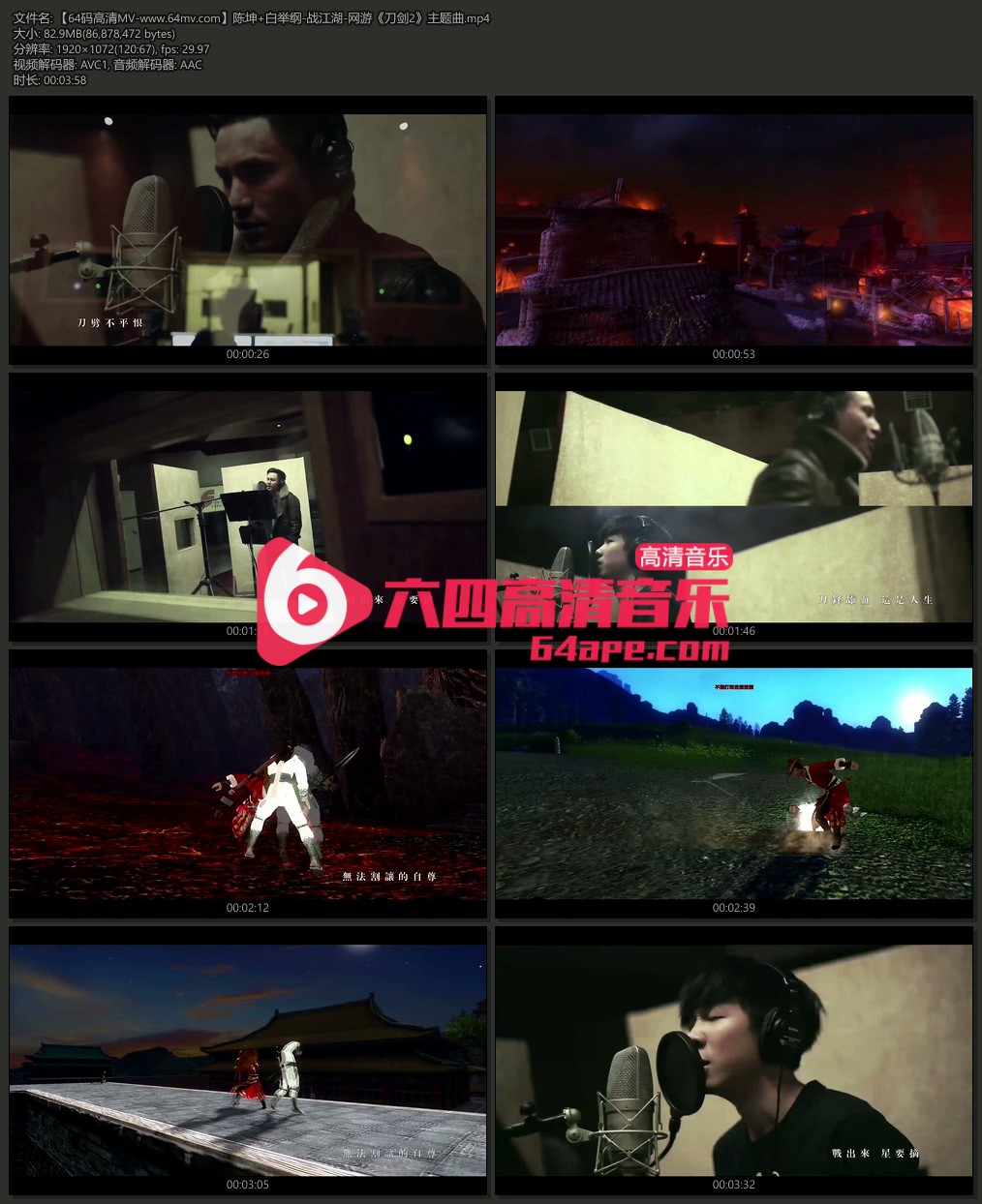 歌曲《战江湖》是游戏《刀剑2》主题曲,由陈坤、白举纲演唱,李焯雄作词,梁翘柏作曲.