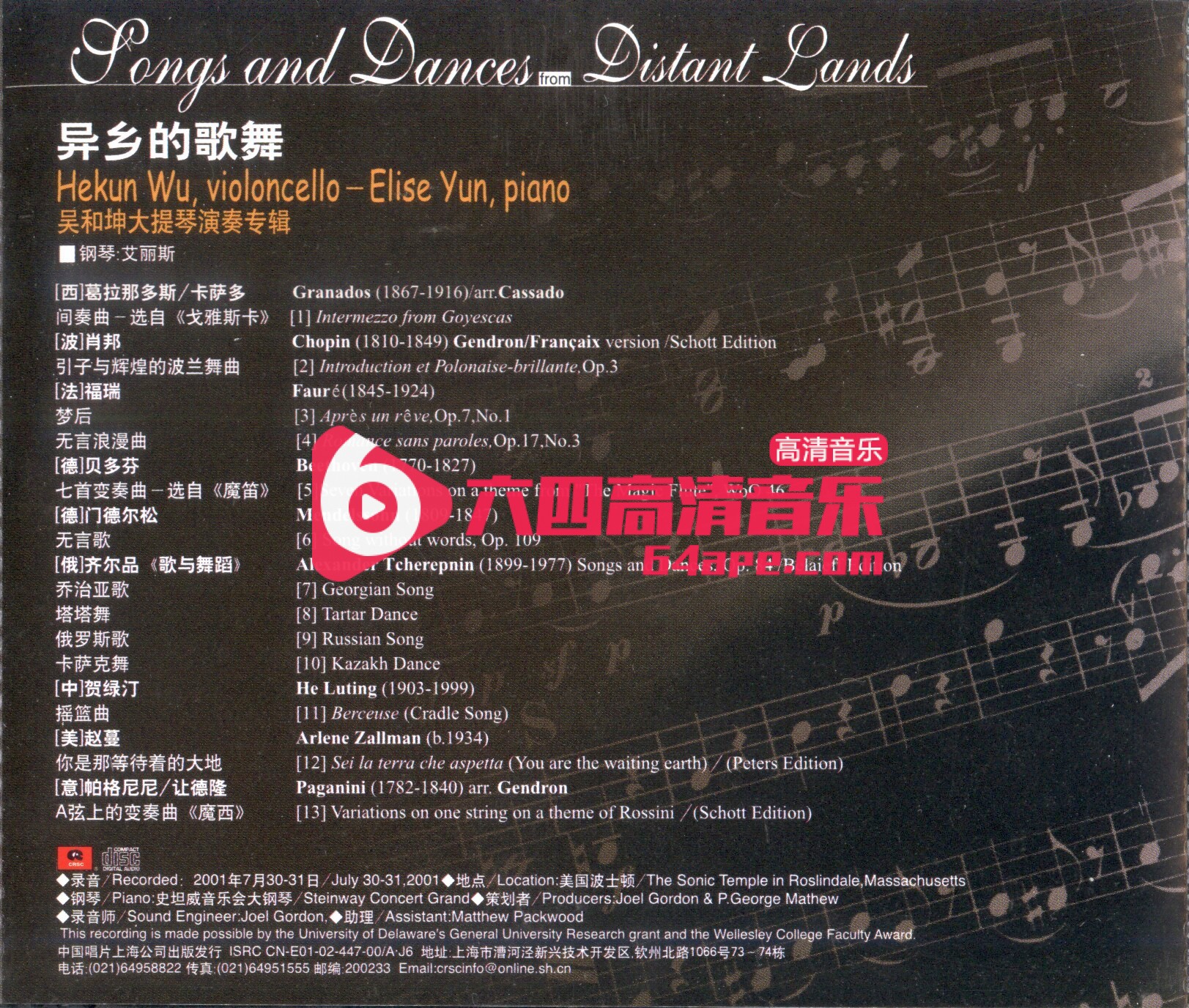 录音时间:2001.7.30-31(美国波士顿)
